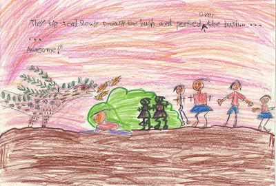 The putting together of this story was an activity inspired by watching the children invent, create, express themselves, play imaginative games, interact with each other and the surroundings on our walks.