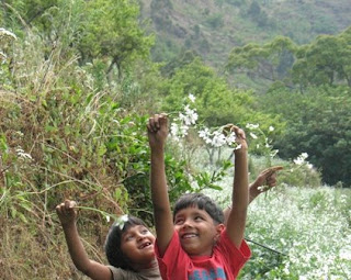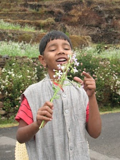 On our walks, the the clouds opened up to magnificent views, we saw flowers in so many colours ,we walked through many farms and we ate radish flowers while we went through them. On these walks in and around Kodai Nanaji would talk about terrace farming and explain what a valley is ! 🙂