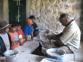 We also met a lot of other wonderful people….friends of Nanaji……Harry Uncle who owns a restaurant called Tava treated all of us to a wonderful meal,where we ate as much paneer and srikhand as we could! 🙂 … Prasanna Uncle and Meenakshi aunty who run a little bakery called Daily Bread…..invited us for breakfast and stuffed us with cream rolls,sandwiches,pastry,pizza and hot chocolate…they also gave a tour of there small bakery where all the goodies were made !! We also visited a school run by Padmini Aunty and participated in the art class there and all the children played football together… Subramaniyam Uncle did pottery with us ….