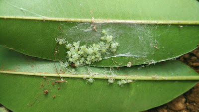 | During Quiet Observation, while a child was looking at a leaf, he met little spider friends. |